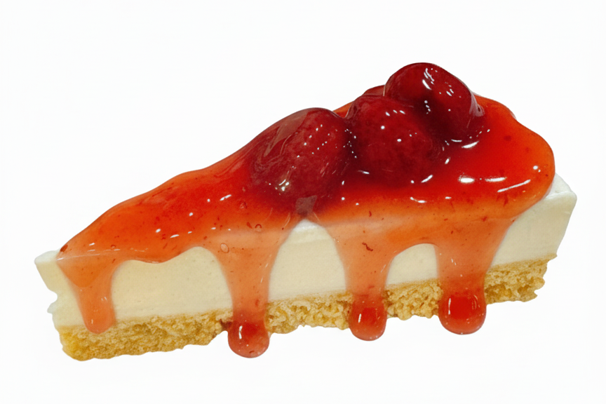 Our Strawberry Cheesecake features a rich and creamy cheesecake filling made with cream cheese, egg, milk, and butter, baked on a golden, buttery biscuit base and topped with fresh, juicy strawberries. Each slice offers a perfect balance of smooth, velvety texture and fruity sweetness—ideal for dessert lovers and special occasions.